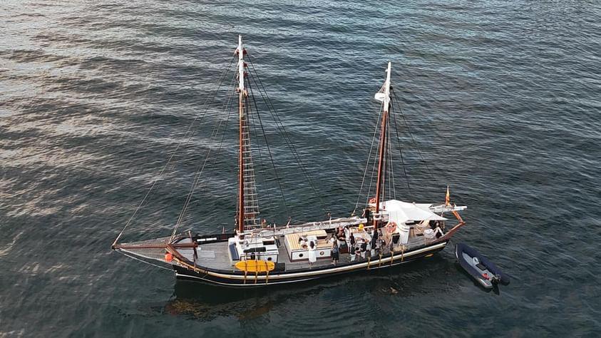 Construida en 1912 en los astilleros del puerto del Freixo, en la ría de Noia, esta goleta de 18,70 metros de eslora conserva la esencia de la navegación clásica. Tras su restauración en 2007, mantiene su robustez y encanto original, ofreciendo un espacio íntimo y acogedor para 12 personas, perfecto para un adiós rodeado de familiares y amigos cercanos.